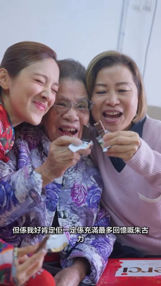 画面随后转到外婆家门口,开门的正是陈凯琳的母亲,三婆孙在朴素平实的客厅里共享巧克力,画面充满了浓浓的港式温情。
