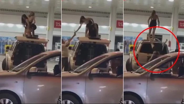 加油站惊见“电臀舞”意外!巴拉圭伊塔市(Itá)两名女子日前在参加完当地传统节日后,余兴未尽地将休旅车停在加油站旁,并直接跳上车顶对着围观群众狂摇电臀,吸引不少路人驻足围观。不料其中一人在变换舞姿时重心不稳,瞬间从车顶“倒栽葱”重摔落地,场面极其尴尬。