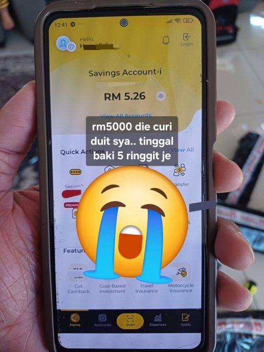 妻子在对方引导下完成了下载与扫描,不料短短几分钟内,银行户头的存款便被清空。事主崩溃直言,这5000令吉是全家省吃俭用准备用来支付房贷的保命钱。他愤怒质疑银行系统的安全性,更自责当时没能及时叫停妻子的操作。