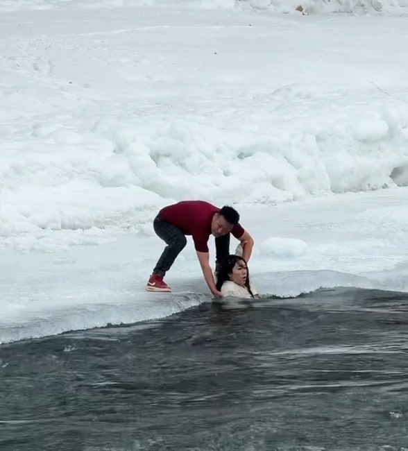 然而,许多自驾游游客为了拍出“人生美照”,往往忽视危险踩上湿滑的冰面,结果不慎打滑坠河。邓子龙的英勇事迹在社交媒体传开后,网民纷纷留言称赞:“穿最薄的衣服,做最硬核的英雄!”