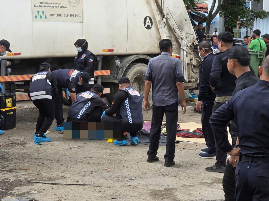 沙巴亚庇实邦加路英达柏迈垃圾站今早惊传骇人碎尸案,民众在华美园商业中心附近的收集点惊见人体残肢后报警,揭发这起残忍血案。