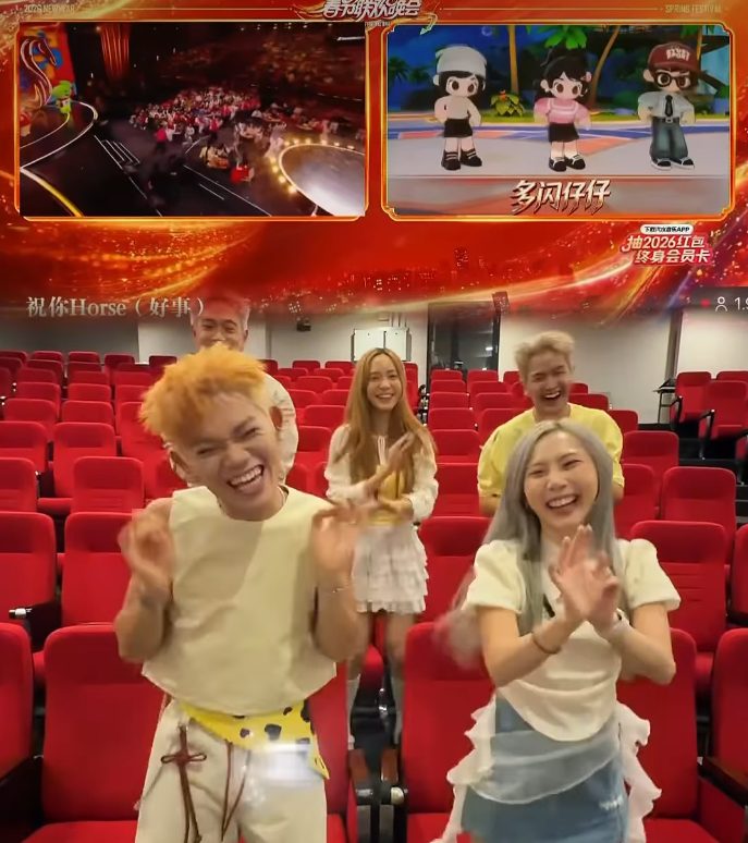 在这场名为《串门没烦恼》的春晚表演环节中,主持人陈怡多与兰钦元翻唱了大马歌手赖铭权等6人合唱的马年神曲《YiHa!》,以及由3P、薛家燕与暴牙菇联手的《HORSEH》。虽然节目组在编舞和歌词上进行了微调,但熟悉的旋律依然让大马观众感到无比亲切。