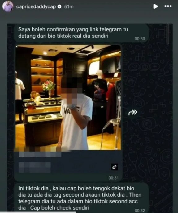 此事由马来说唱歌手Caprice率先在Instagram发文点名曝光。他说,涉事歌手在其社交媒体个人资料中附上Telegram频道链接,他点入后发现对方疑在频道内公开售卖色情视频,令他感到震惊。