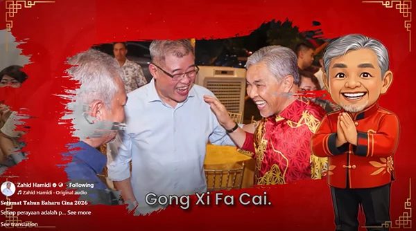 副首相拿督斯里阿末扎希今日在面子书发布新春献词视频,并以Q版卡通形象出镜向华裔同胞送上祝福。他在视频中强调,尽管族群背景不同,“但我们都是马来西亚人”,并向全国华裔道贺新年快乐、恭喜发财。