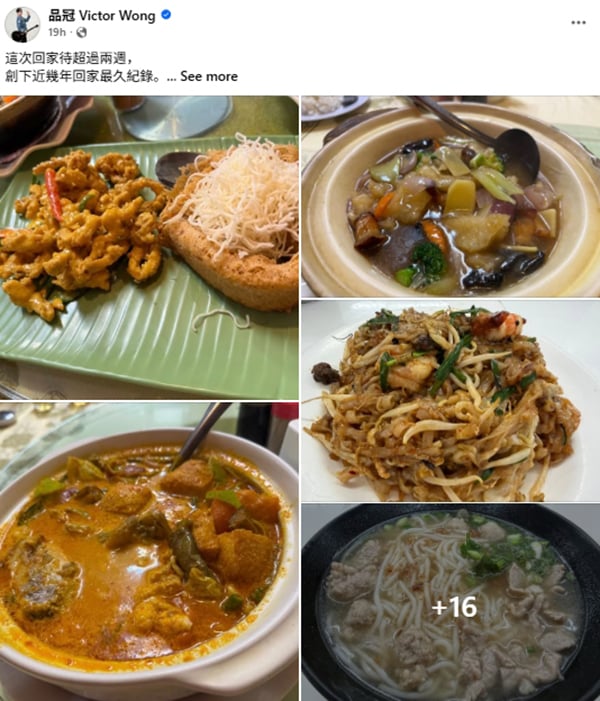 他在面子书分享返乡过年的心情,直言自己更偏爱“local铜板美食”,字里行间透着对家乡味的眷恋。