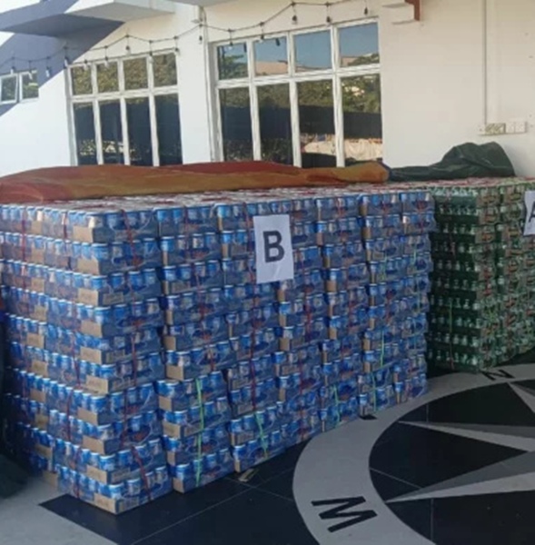 经登船检查,执法队在甲板下赫然发现堆积如山的品牌酒类。初步点算,现场共有540箱各类酒精饮料,这批货物被怀疑是在未经申报及完税的情况下,企图从免税岛纳闽走私出境,以供应外部市场牟取暴利。