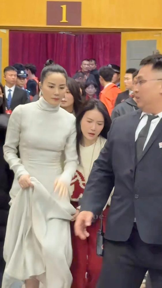 由于画面过于冲击,不少身在现场的网民纷纷释出侧拍影片。画面中,王菲在多名女性工作人员的簇拥下缓步步出宴会厅,随行人员贴心地为其拎起沉重的裙摆并递上羽绒外套。正是这套贴身白裙,让天后在走动间胸前轮廓显露无疑。