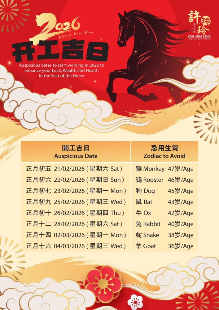 2026年的农历正月初一落在公历2月17日。在踏入这个全新的开端之际,许多老板和打工一族已开始筹划何时重返职场。为了让大家能根据自身命格占尽先机,本地知名风水大师罗一鸣、鲍一凡及许玲玲已纷纷出炉了2026年开工吉日表。