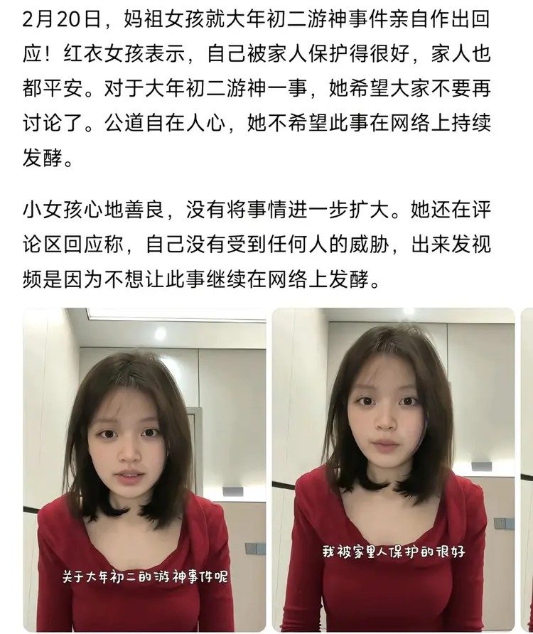 在活动停摆后,网传称主办方随后请回原乩童到场。多段视频显示,重新掷杯后较快出现“圣杯”,轿子最终被抬起,巡游得以完成。与此同时,视频里也可见被指为原乩童的少女情绪激动、不断哭泣;网络亦出现“曾遭强迫登轿、甚至被威胁”等说法。此类指控目前同样未见公开证据支撑,相关当事人、主办单位与赞助方也未见完整回应。