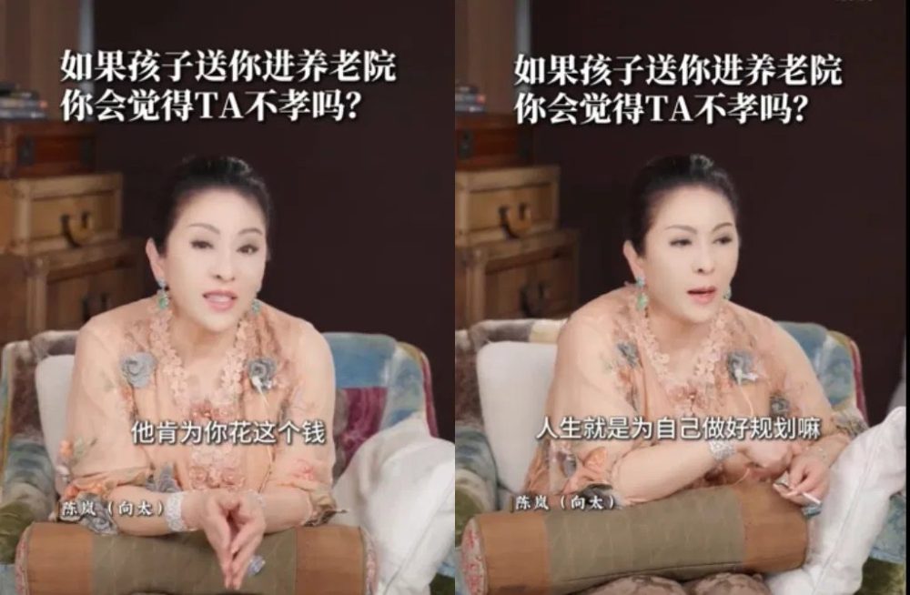 香港影坛大亨向华强的妻子“向太”陈岚,近年来转战社交平台成为千万级网红,其直率的人生观频频掀起话题。日前,她在短视频中针对“送父母进养老院是否等于不孝”这一敏感课题发表见解,语出惊人表示:“孩子肯为你花这笔钱,其实已经很孝顺了。”