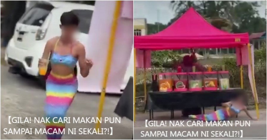 一名男子为了推销其档口的含糖饮料(Air Balang),竟然异想天开穿上五颜六色的“美人鱼”装,在档口前搔首弄姿并翩翩起舞,荒诞行径瞬间在社交媒体上炸开了锅。