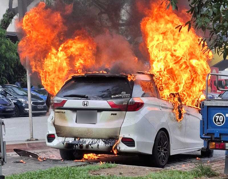 这起惊险的火灾于上周五(27日)傍晚约5时45分,发生在文礼坊第221座组屋附近的露天停车场。