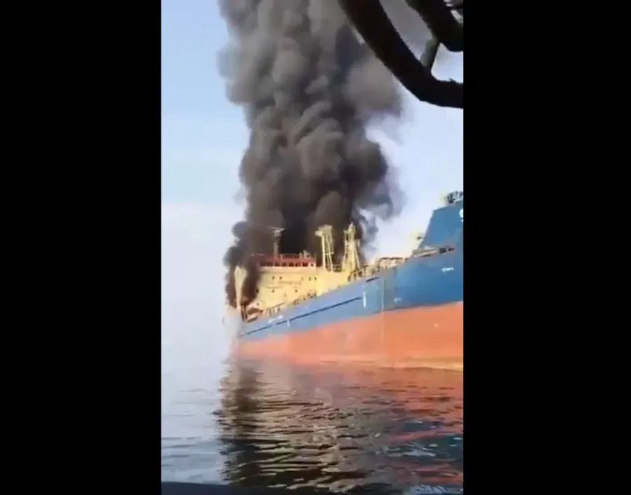 一艘试图非法通过霍尔木兹海峡的油轮于周日遭袭,目前正在沉没。伊朗国家电视台报导了这一消息,并播放了显示油轮燃烧、海上升起浓重黑烟的画面,但未详细说明具体袭击细节。