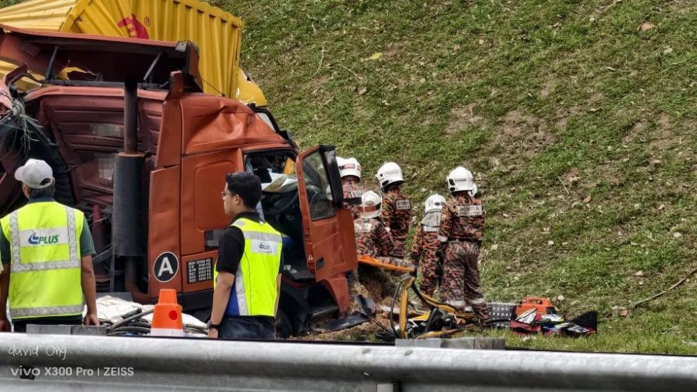 这起严重事故是于下午约4时30分,在南北大道第378公里,即美冷(Behrang)往仕林河(Slim River)的北上路段发生。根据社交媒体流传的视频,现场画面触目惊心:一辆巨大的拖格罗里在失控后倾斜横搁在中央车道,另一辆罗里则冲入路旁沟渠,庞大的车身同时阻断了紧急车道。