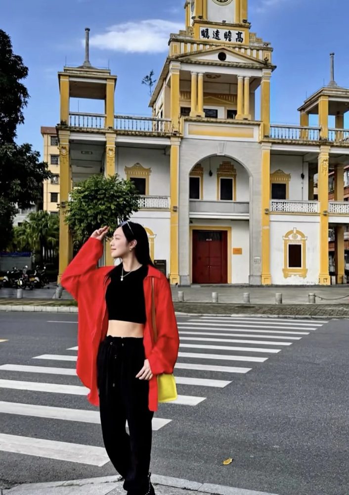 除了温馨的家庭聚会,冯盈盈也不忘在恩平钟楼前大秀好身材。她以一身轻便装束亮相,无意间露出纤细小蛮腰,让普通的街景瞬间变得极具时尚感。照片曝光后,有网民幽默留言调侃:“恩平这个烂钟楼竟然给你拍出了巴黎的感觉!”力赞她的港姐气场能将家乡平凡的建筑物拍成国际级大片。