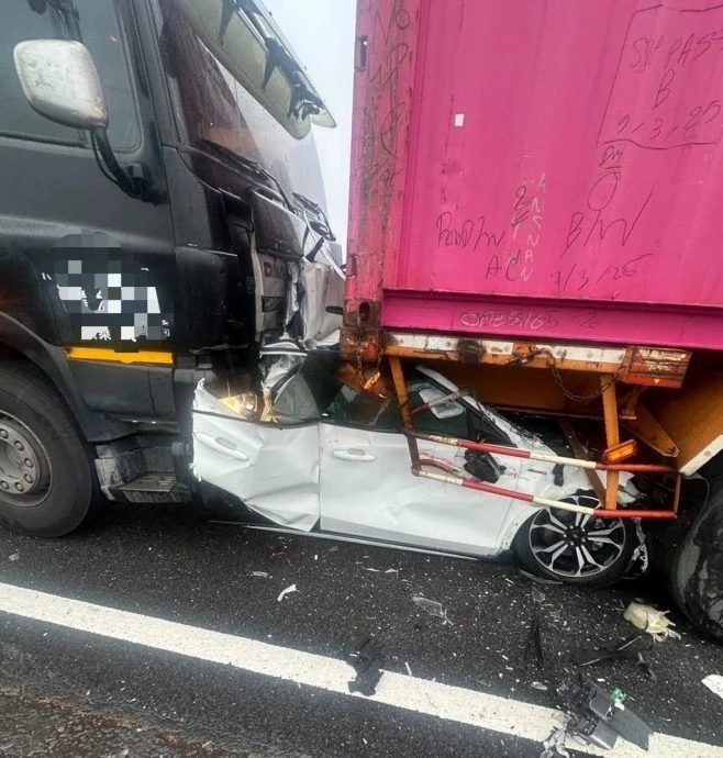 台湾国道惊悚车祸夺命!一名44岁业务员昨日傍晚开车返家途中,在国道1号高雄路竹路段遭遇恐怖连环撞。一辆大型卡车在前方施工缓行的车流中,竟完全未减速猛撞前方的轿车,导致该轿车被硬生生塞入前方货柜车底,瞬间沦为废铁。轿车司机被受困近一小时后救出,最终因伤势过重撒手人寰,留下悲痛万分的家属。