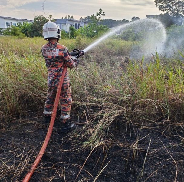 基都隆路(Jalan Kidurong)一处紧邻住宅区的空地昨日惊传火警,半英亩灌木丛陷入火海,浓烟一度威胁周遭民宅!所幸民都鲁消拯局反应迅速,在接到投报后火速驱车13公里赶抵封锁火路,最终成功在1小时内扑灭火势,化解了一场可能波及邻里的危机。