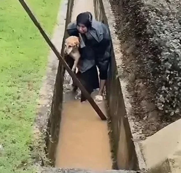 在大马社会中,许多巫裔穆斯林基于宗教习惯,通常会尽量避免与狗只接触。然而,近日一段在社交媒体流传的视频,却让不少网民动容,一名巫裔女子在倾盆大雨中跳入沟渠,只为了救出一只受困的小狗。