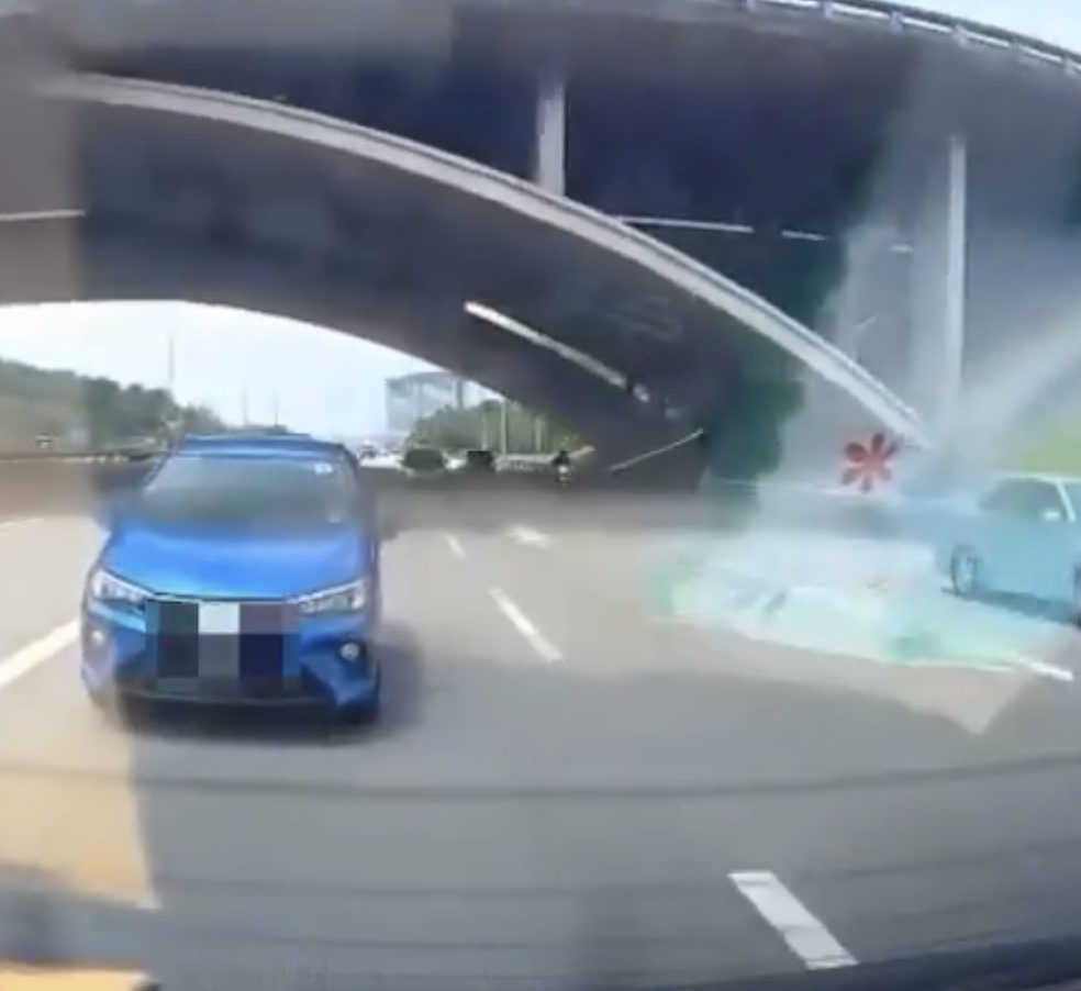 根据社交媒体流传的行车记录仪画面,事发时间相信是昨午约2时47分。涉事的是一辆蓝色第二国产Bezza轿车,当时原本行驶在右侧车道,惟车辆行驶至接近分岔出口时,疑似为了赶上左边路口,突然减速并迅速往左切入。