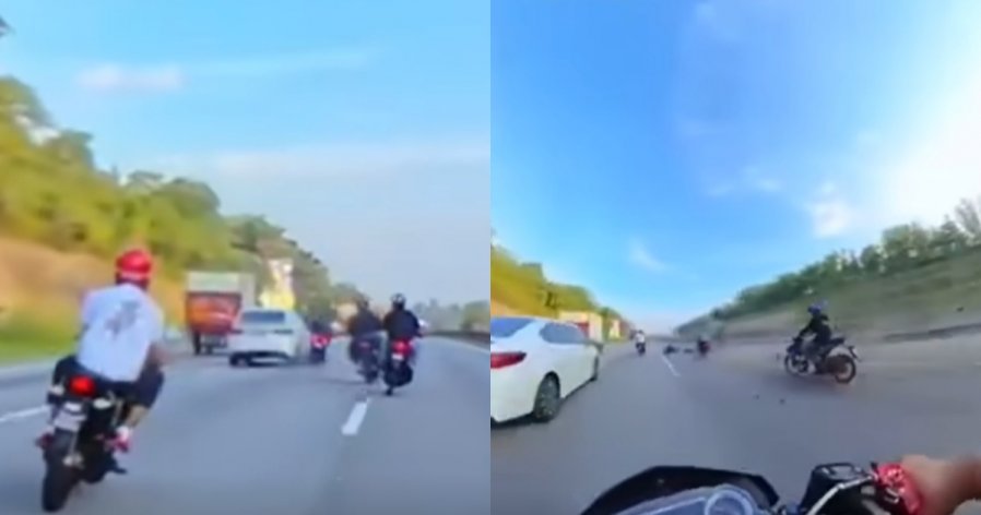 根据网民上传的视频显示,该辆白色轿车在没有任何预警的情况下,突然猛力切入侧边车道。由于事发突然,紧随其后的一辆摩哆骑士根本反应不及,直接撞上轿车侧身,连人带车重摔在地。