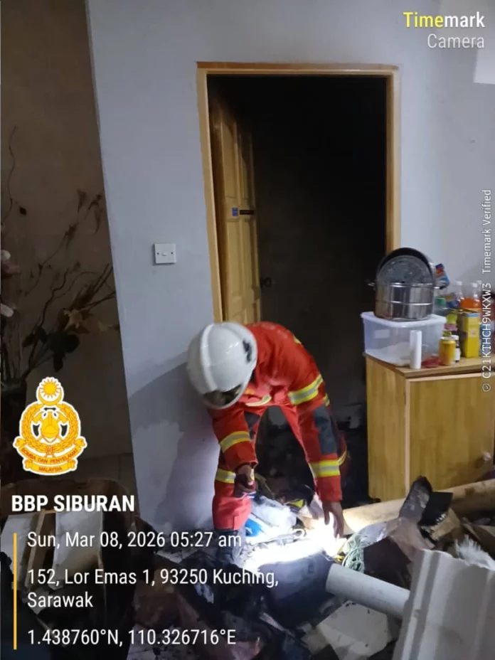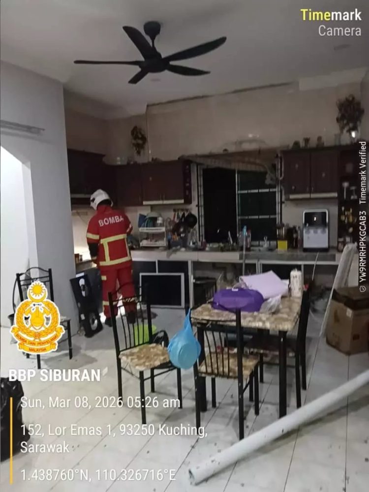清晨惊魂!古晋朋尼逊路9哩玛斯花园(Taman Mas)第1巷的一栋民宅,今日凌晨4时42分惊传煤气泄漏引发大爆炸。剧烈的气爆冲击力导致厨房天花板应声坍塌,一名女子不幸被灼伤,紧急送院救治。