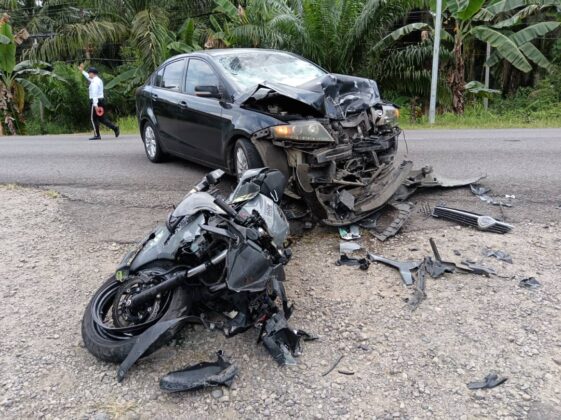 警方初步调查指出,一辆由46岁男子驾驶的Proton Preve轿车当时从拿笃市区驶往东谷方向。当车辆行驶至甘榜Sibural路口,准备右转进入路口时,与一辆从Felda方向直行驶来的摩哆发生碰撞。