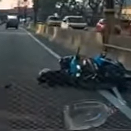 从画面可见,一名摩哆骑士在车流中行驶时,一辆原本在中间车道行驶的轿车突然向右变道,而且并未打方向灯。骑士虽然尝试减速闪避,但距离过近,最终仍与车辆发生碰撞,并被冲撞到路旁倒地。