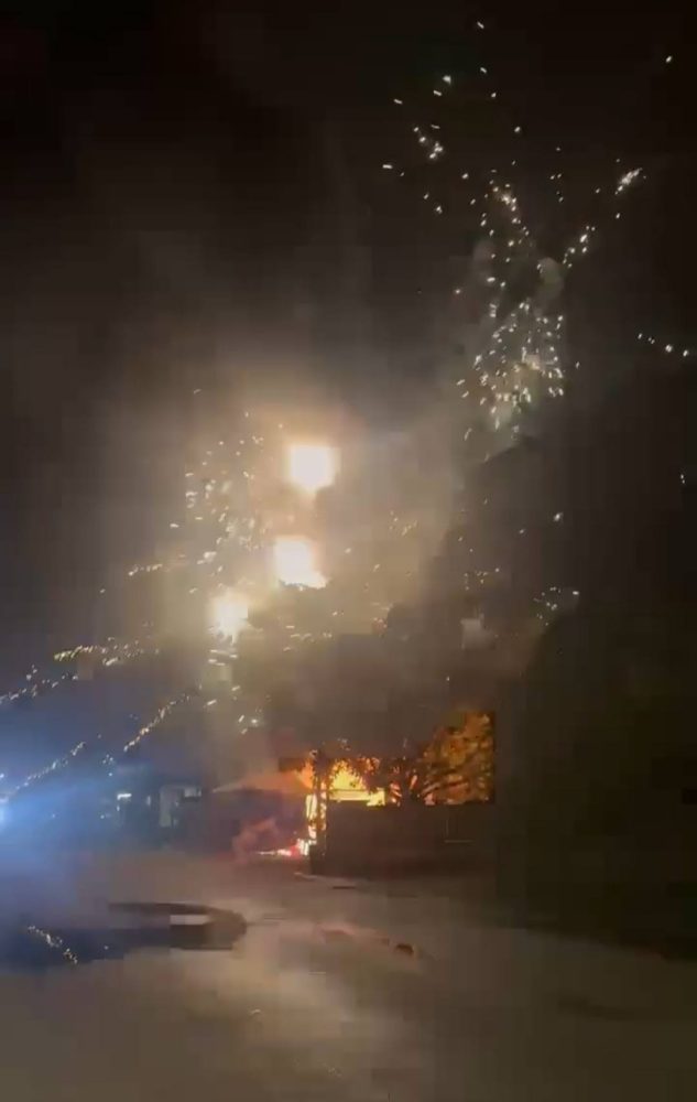登州朱盖今晨发生涉及烟花爆竹的火患,一处作为临时销售点的帐篷与存货货柜失火,现场火光冲天,并不断传出爆炸声,惊动附近居民。事故虽未酿成伤亡,但整批爆竹存放区在大火中严重损毁。