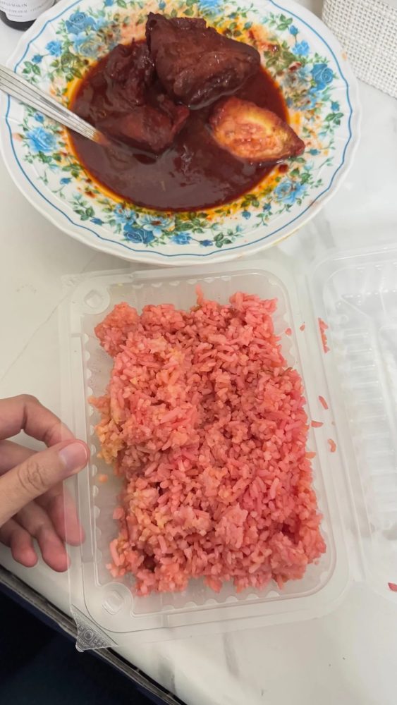 一名大马女子日前在社交平台Threads发文,投诉森美兰汝来斋戒月市集(Bazaar Ramadan Nilai)一名摊贩售卖的“番茄饭”名不副实。她表示,自己花9令吉购买的番茄饭味道竟像玫瑰糖水,几乎没有番茄饭应有的咸香味,让她感到十分失望。