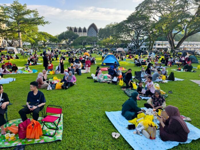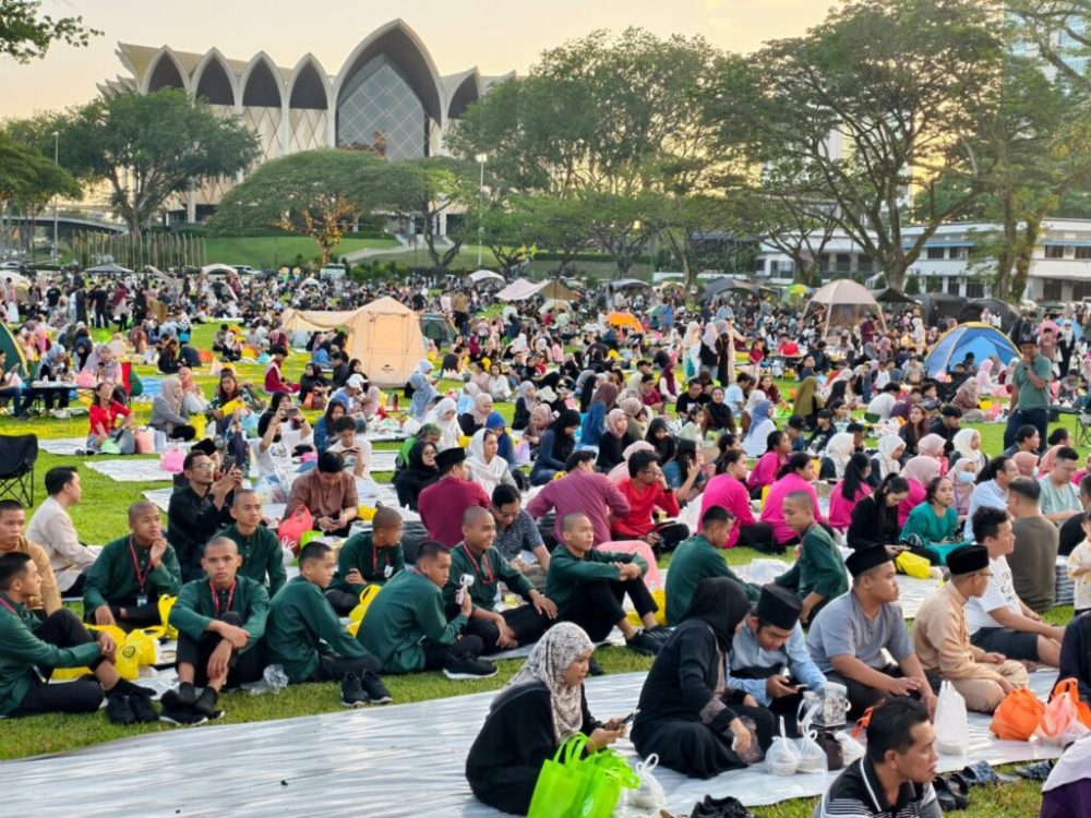约5000名民众今晚齐聚古晋独立广场,参与2026年“Juh Berambeh Sungkey”活动,在斋戒月期间一同开斋,现场气氛热闹而温馨。
