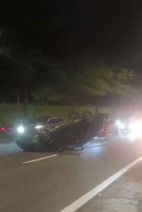 根据Astro Radio交通情报,该事故发生在从森林局前往国会大厦的路段。一辆轿车在事故中翻覆,四轮朝天,横在中间车道上,导致附近路段交通严重缓慢。