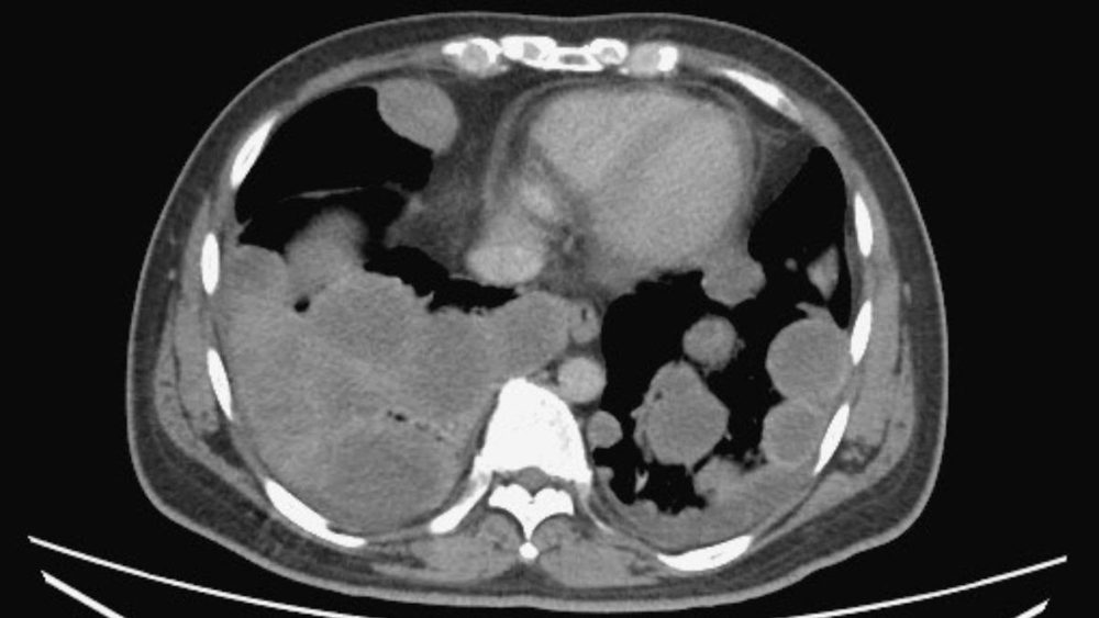 院方安排X光及电脑断层扫描后,发现其体内多处已有肿瘤扩散,涉及肺部、肝脏及后腹腔。医疗团队进一步追查后确认,病灶源头来自左侧睾丸一个约5.5公分的恶性肿瘤,而后腹腔另有一个高达12公分的巨大肿瘤,已属睾丸癌晚期并出现广泛转移。