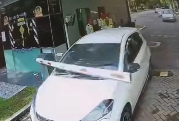 柔佛一处围篱社区昨日发生轿车硬闯事件,一名男子被指在未完成登记程序下驾车进入住宅区,接走一名外籍女佣后,离开时更无视保安阻拦,直接撞毁保安亭电动栏杆冲出,引起警方介入调查。
