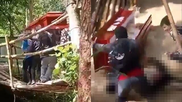 综合外媒报道,事故发生在本月17日。事发时,送葬队伍正抬着棺木过桥,不料桥面在多人同时通行下明显下陷,随后整段结构突然崩塌。由于桥下正是夹带泥水的湍急溪流,抬棺者及随行亲属共10多人瞬间跌入水中。