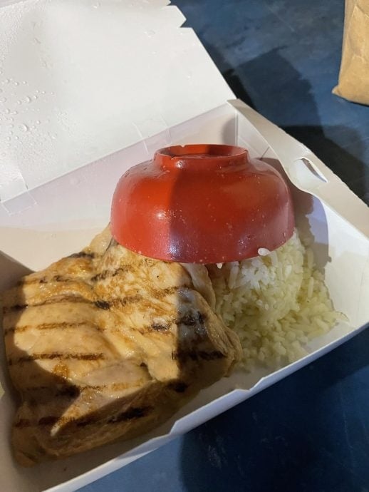 一则外卖乌龙在开斋节前夕引发网民热议,大马一名准备搭火车返乡过节的女子,在车站附近咖啡馆打包餐点后,途中打开饭盒准备吃饭时,竟发现盒内多了一个红色小饭碗,让她当场傻眼又忍不住发笑。