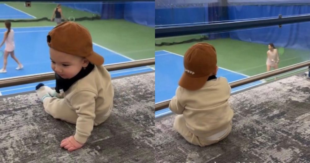 一向对孩子外貌十分保护的谢婷婷,近期罕见“放宽尺度”,首次曝光儿子的正面样貌。她上传一段短片,画面中她正在球场打网球,而仅7个月大的Brooklyn则坐在场边安静观看。