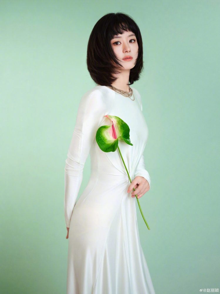 在造型搭配上,赵丽颖选择剪裁利落的白色长袖连身裙,配上简约饰品,整体风格干净优雅。再结合自然妆容与柔和背景,整体形象清新明亮,散发春日般的轻盈气息。