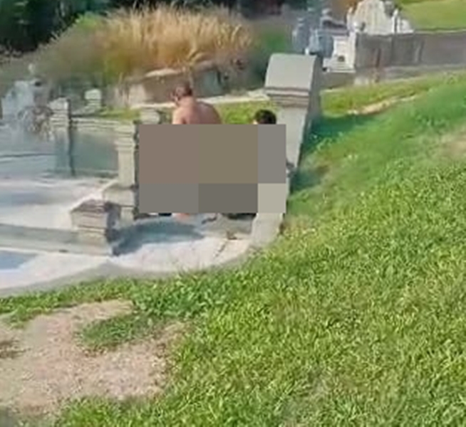 这起事件是在一段约38秒的视频疯传后引发关注。画面显示,一名男子全身赤裸背对镜头,另一名女子则下半身赤裸,坐在墓地石墩上。拍摄视频的女子在现场高声斥责,并声称对方已不是第一次在墓园内裸体。
