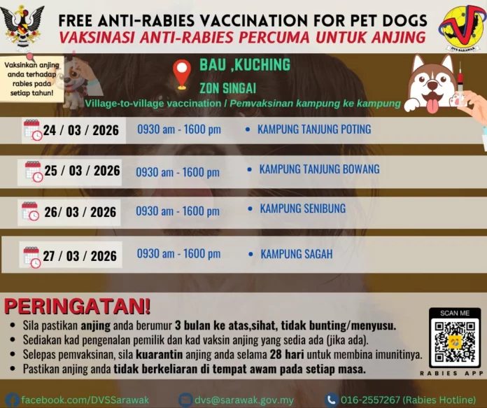 砂兽医服务局呼吁民众踊跃响应,并将相关信息分享给邻里,一同推动实现“砂拉越零狂犬病”的目标。如需进一步咨询,可联系狂犬病热线016-2557267了解详情。