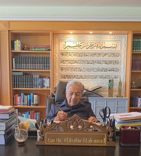 根据马哈迪面子书专页上传的视频,他精神状态良好。在开始工作前,助理先协助准备好所需文件。视频显示,马哈迪随后会见了一名来访客人,并开始签署文件处理工作。