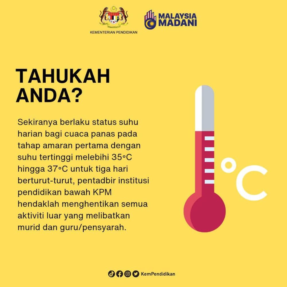 根据教育部规定,若某地区连续3天气温介于摄氏35至37度之间,所有学校必须暂停课外活动,以避免学生在高温环境下进行户外活动,降低中暑风险。