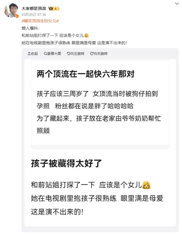 娱乐圈近日再掀舆论风暴,一则“顶流情侣隐婚并育有一女”的爆料在网络疯传,引发大量讨论。消息指两名一线艺人已低调交往长达六年,并育有一名约3岁的女儿,目前由男方父母在老家照顾,相关说法迅速在各大社交平台扩散。