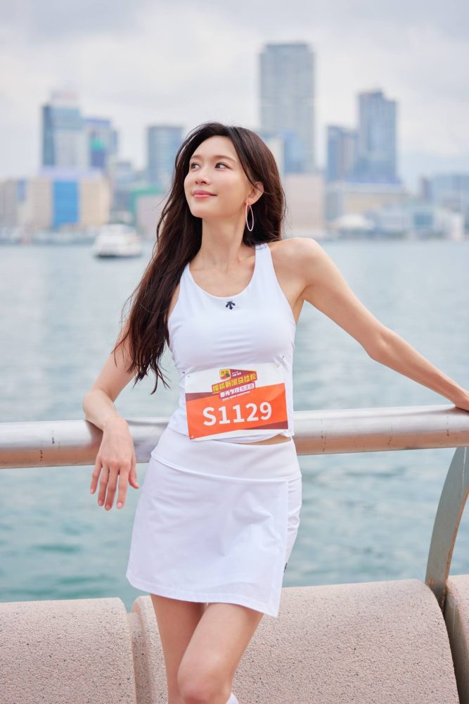 反观林志玲在香港马拉松活动中释出的照片,则属于经过挑选的官方或艺人美照。她以白色运动造型亮相,搭配贴身背心与短裙,再配合鞋袜与整体造型设计,在光线、角度及表情管理下,呈现出更精致的视觉效果。