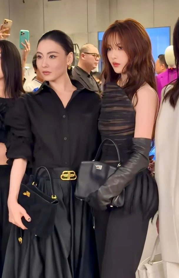 杨超越则同样以全黑造型现身,选择露背剪裁的半透视上衣搭配西装裤,风格偏向性感帅气,展现年轻一代的时尚气息,与张柏芝形成鲜明对比。