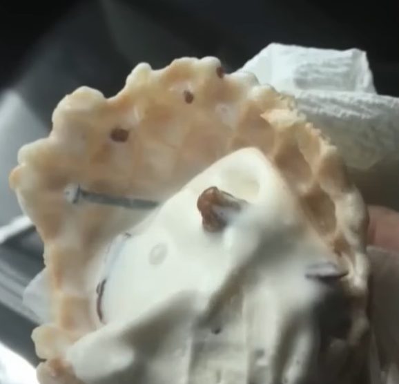 根据案件资料,事主巴克利于2018年9月11日前往佛州棕榈湾市一家Bruster’s Ice Cream门店购买奶油核桃口味冰淇淋,期间在不知情情况下吃下受污染产品。她事后称,自己吞下冰淇淋后很快感觉喉咙有异物卡住,当时原以为只是口味中的核桃碎块,并未马上意识到情况异常。