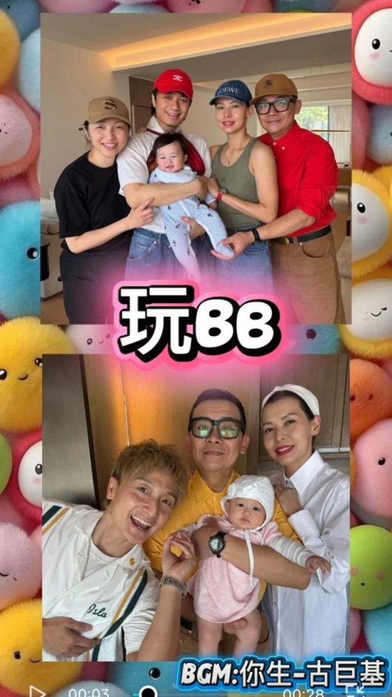 近日,古巨基夫妇与好友雷颂德一家聚会,期间曝光幼子的近照。