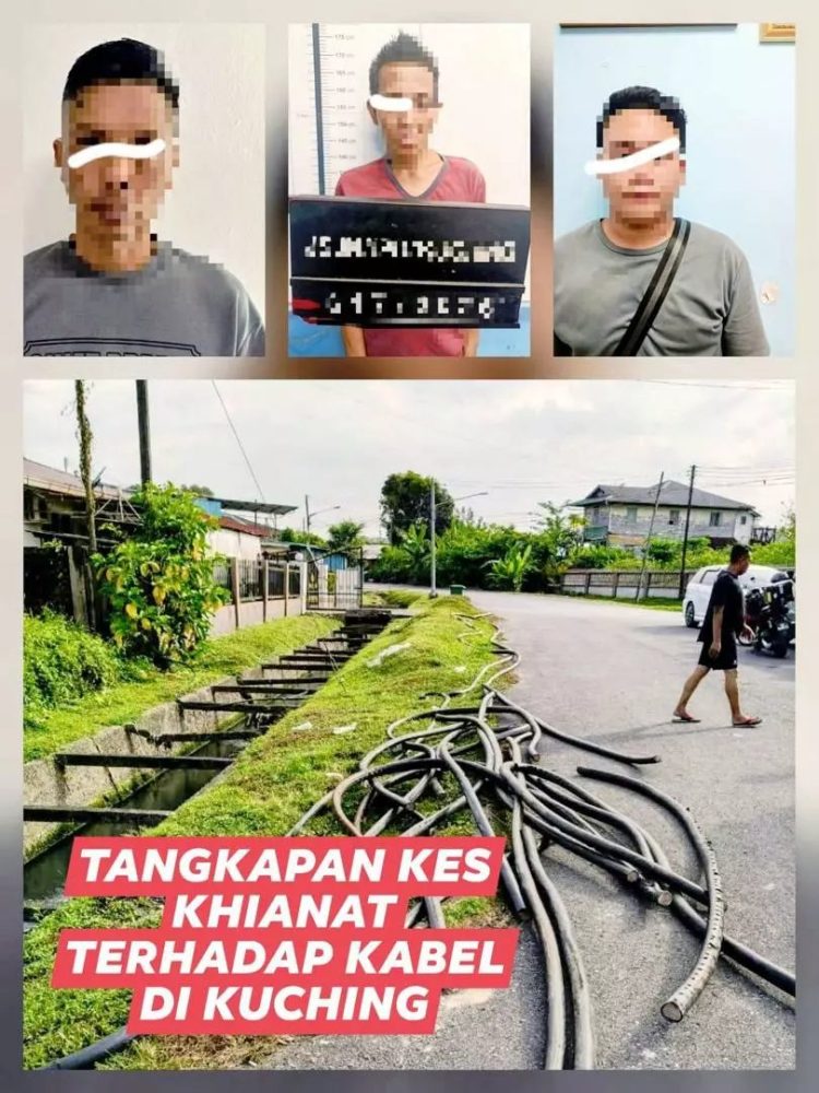 根据《诗华日报》报道,古晋警区主任艾力森纳卡今日凌晨发布消息,指出三名嫌疑人年龄介于21至45岁,涉嫌于昨日早上8时30分在累萨路嘉丽花园盗取电缆。