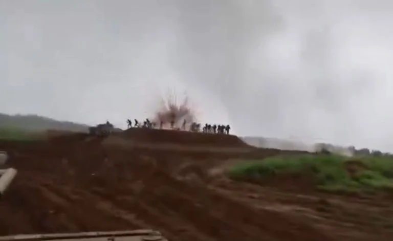 画面中,该步战车突然向高台方向发射一枚烟雾弹,烟雾弹几乎落在观摩人员所在位置附近,现场拍摄的士兵当场惊呼连连,画面显得相当惊险,也让不少网民质疑训练现场的安全管理是否存在漏洞。