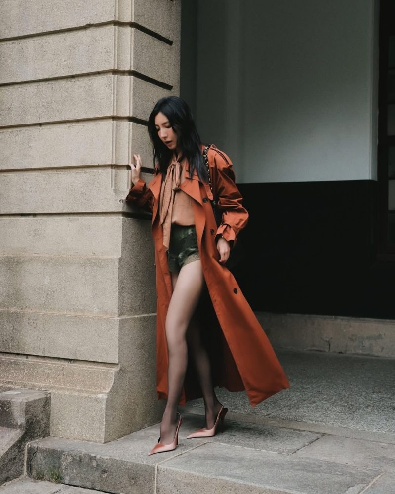 其中最吸睛的,是她以短裤搭配黑丝袜的造型,大方展现修长双腿,再配上尖头高跟鞋,进一步拉长比例,整体视觉效果抢眼,性感与气质兼具。