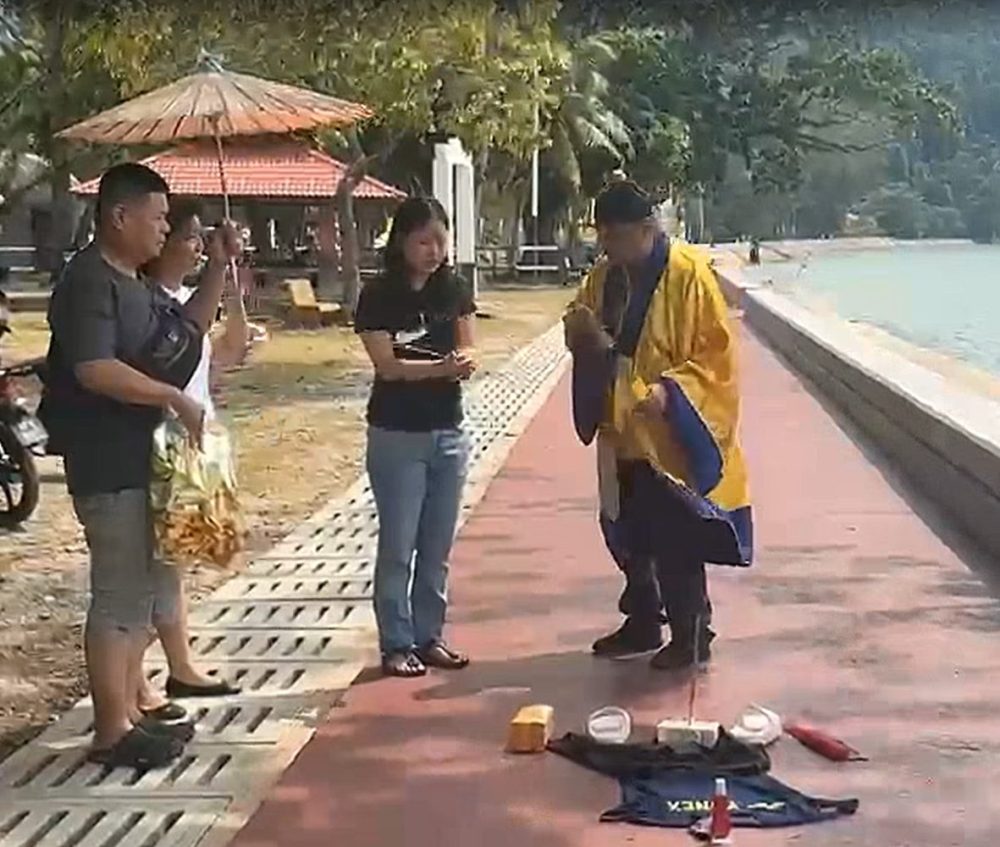 在皮划艇翻覆事件中不幸遇难的男死者林枷城,其家属随后抵达独立海滨,为他举行招魂仪式。